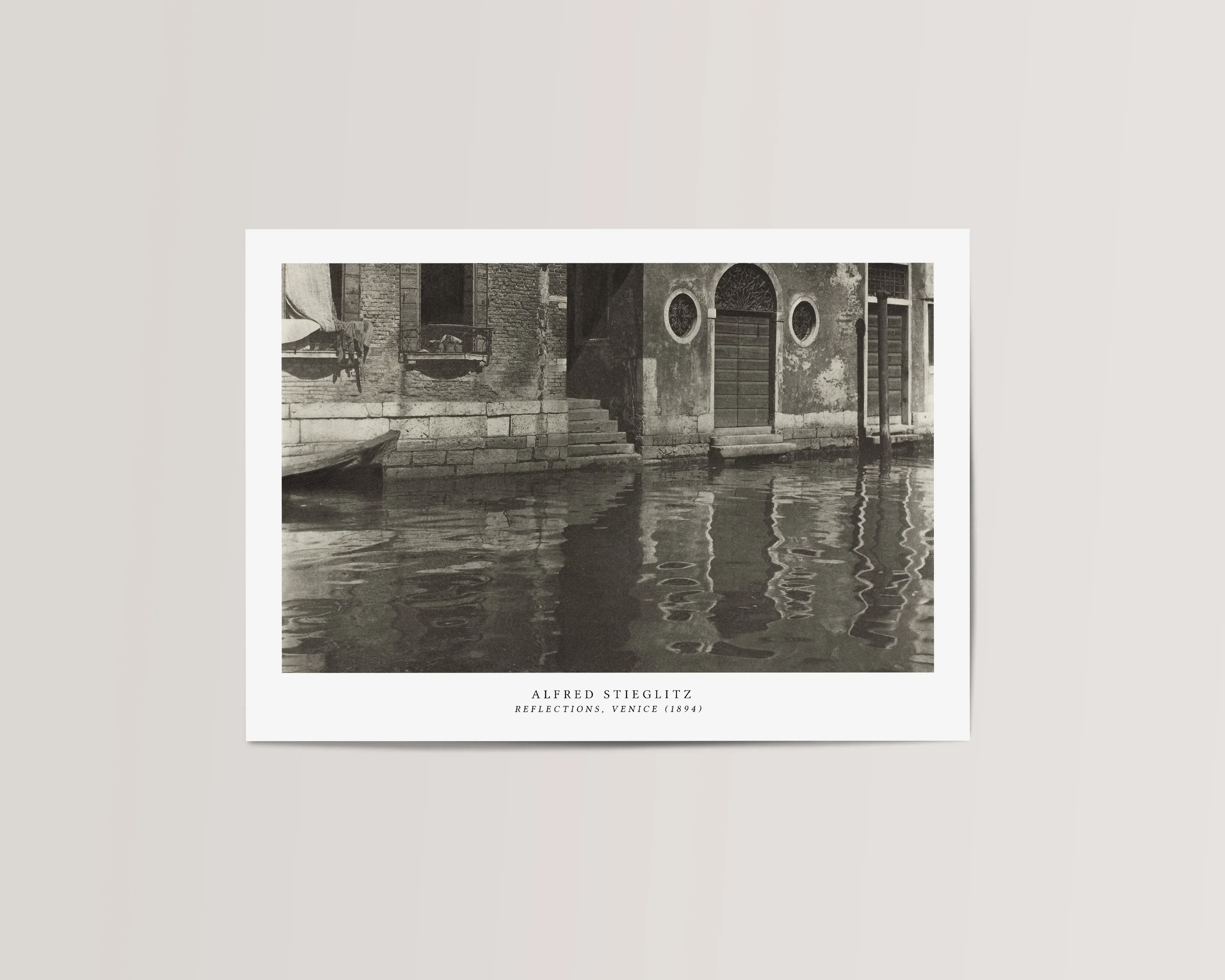 A fine art print of Alfred Stieglitz' Reflection In Venice Photo. An iconic photograph printed in an exhibition style format.