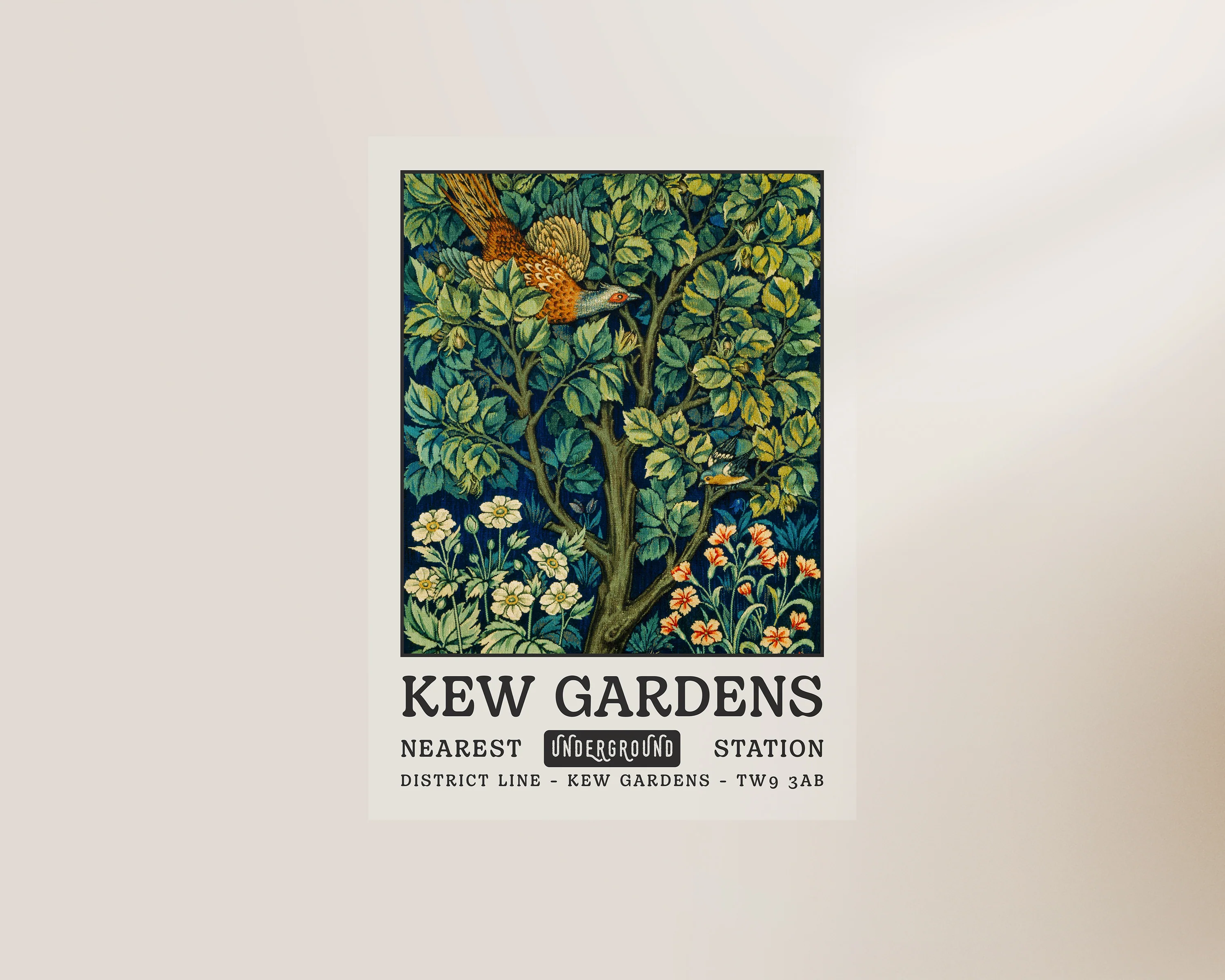 A vintage Kew Gardens exhibition style print, featuring a nature infused tapestry. Printed on archival matte 240gsm paper. Available in multiple sizes, with framed or unframed options. Exclusively designed by one of our artists at our studio.
