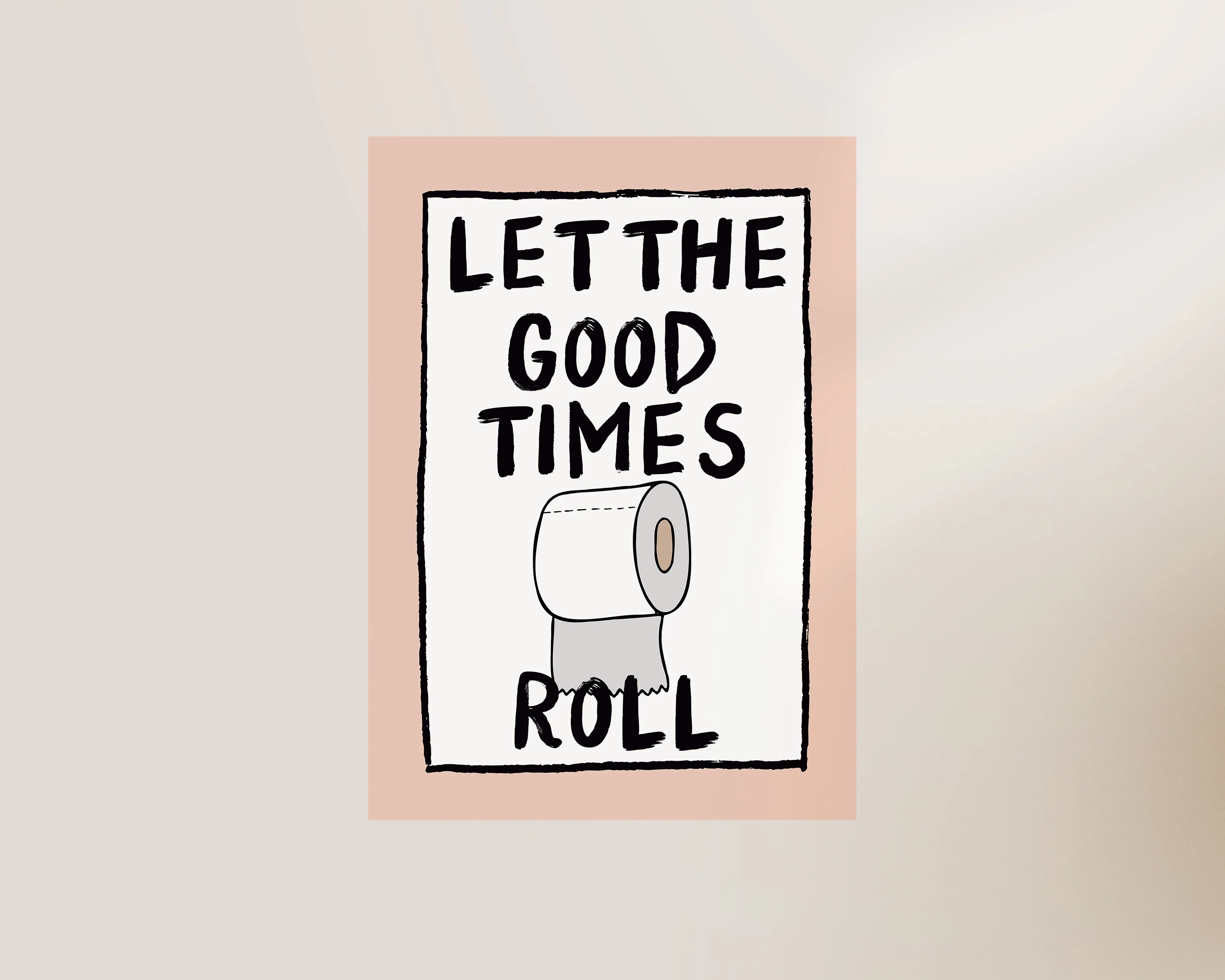 A toilet roll bathroom art print featuring pink border. Exclusively designed by one of our artists at our studio.Â